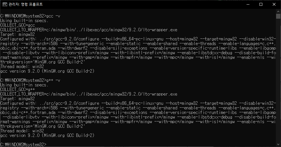 Window용인 MinGW를 사용해요.