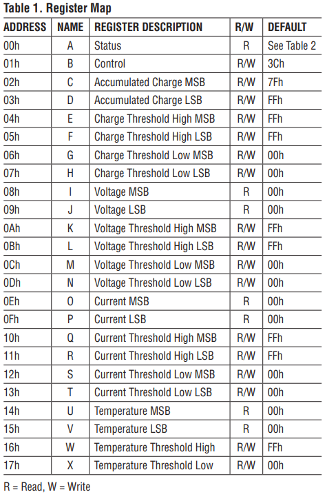 그러므로 0xFFFF - Accumulated Charge MSB, LSB 값은 배터리에서 소모된 저하량이다.