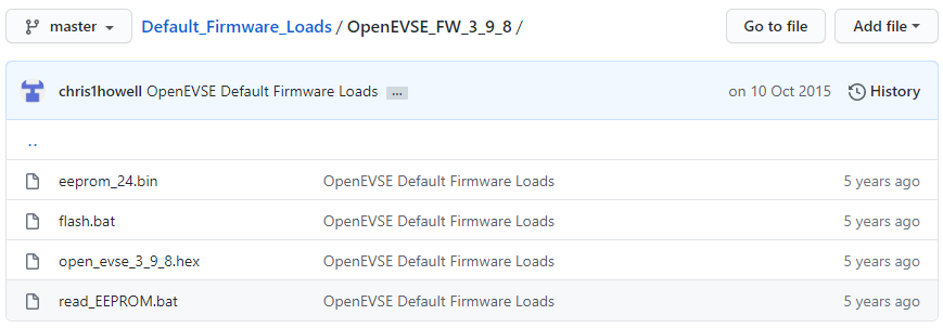 OpenEVSE 보드를 판매할때 들어있는는 펌웨어가 버젼별로 모아져 있네요.