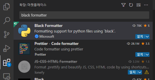 VSCode의 Extension에서 "black formatter"로 검색합니다.