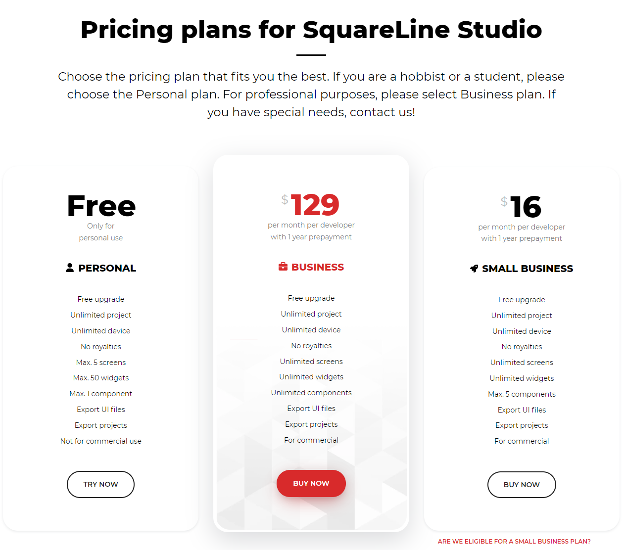 1) Free : 페이지가 많이 않은 간단한 것은 사용가능합니다.2) Small Business : 저렴한 버전3) Business : 비싼 버전