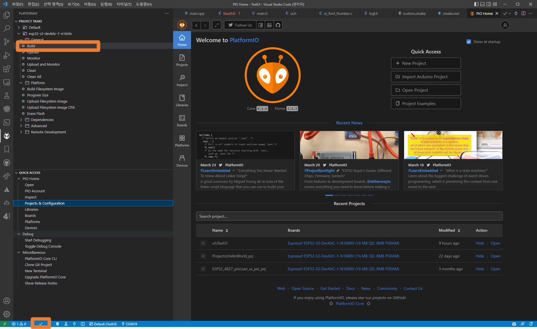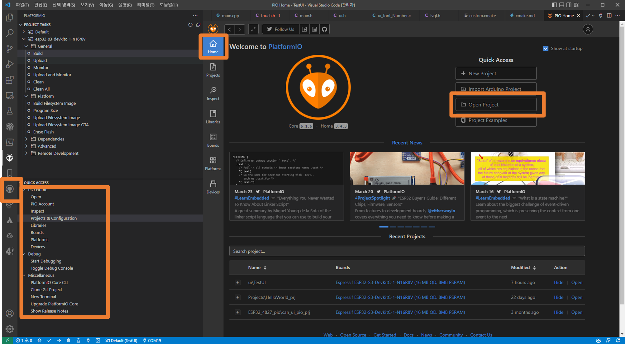 소VSCode를 이용하여 PlatformIO 프로젝트를 생성합니다.