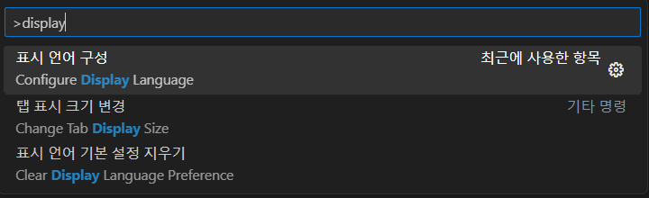 명령 팔레트에 'display' 입력하여 언어 구성 명령(Configure Display Language)를 선택합니다.