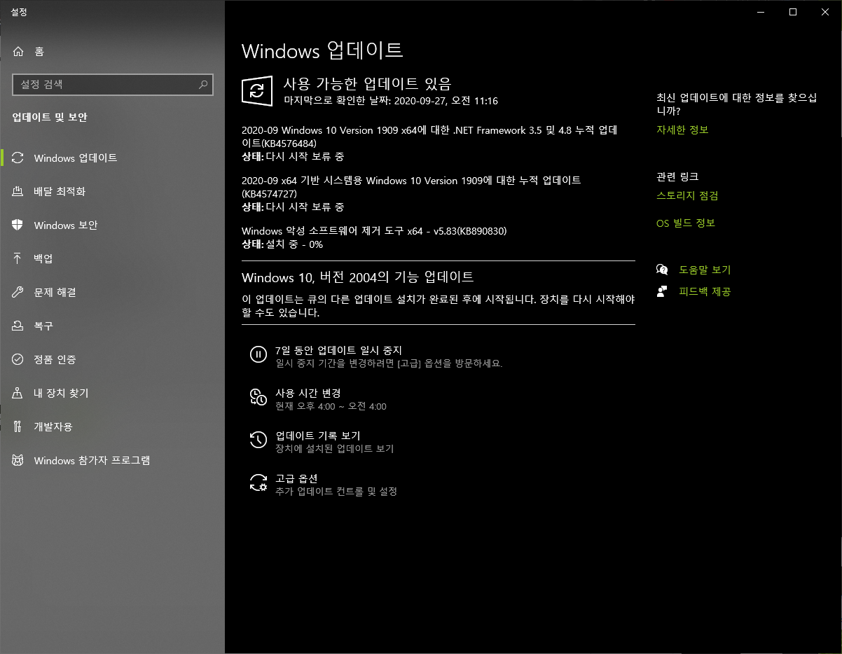 현상태나 업데이트를 보거나 진행할 수 있어요.