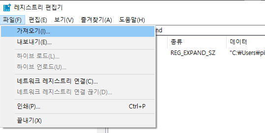 - 레지스터 편집기에서 가져오기로 TXT파일 불러오기