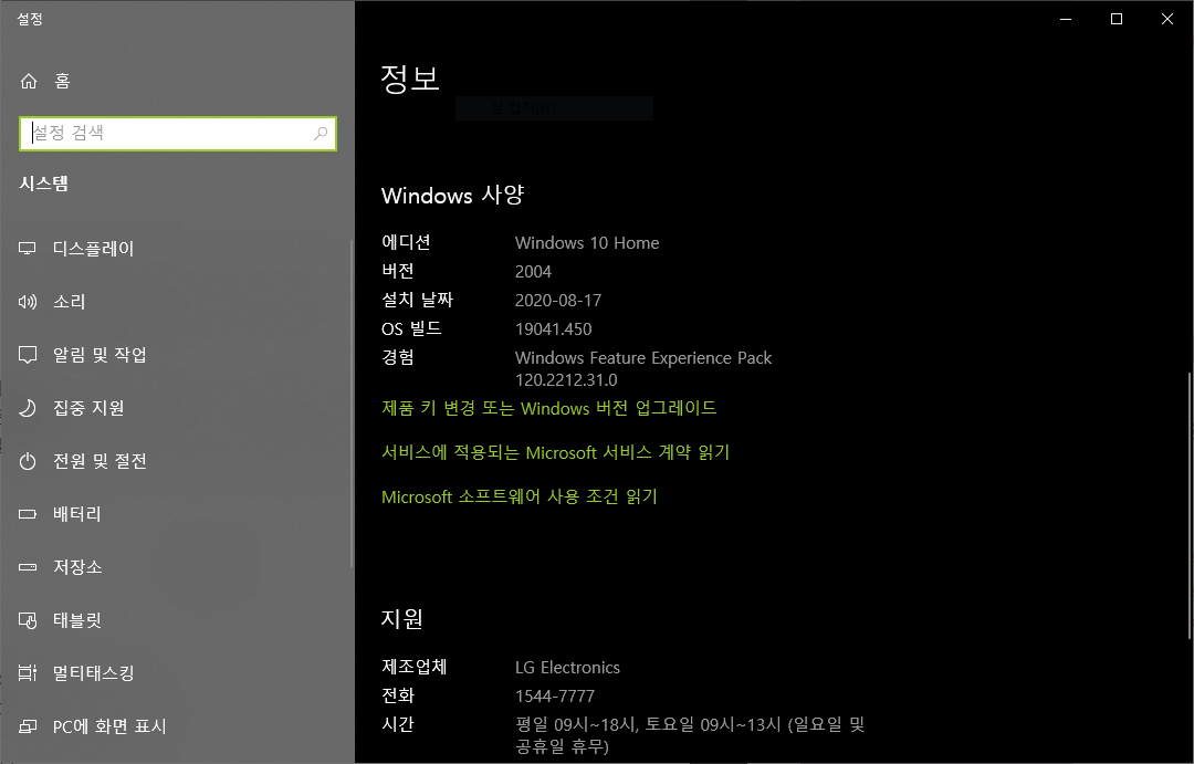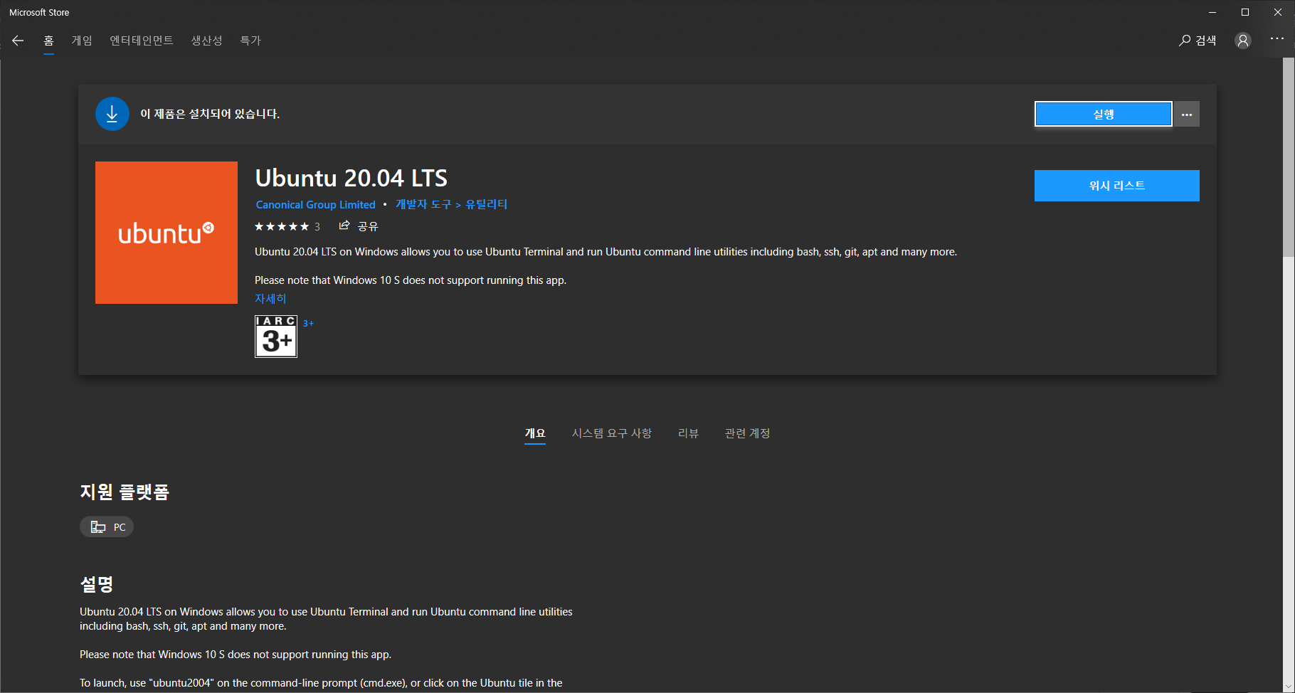 현재의 버전을 확인할 수 있고 wsl동작함을 알수있다.