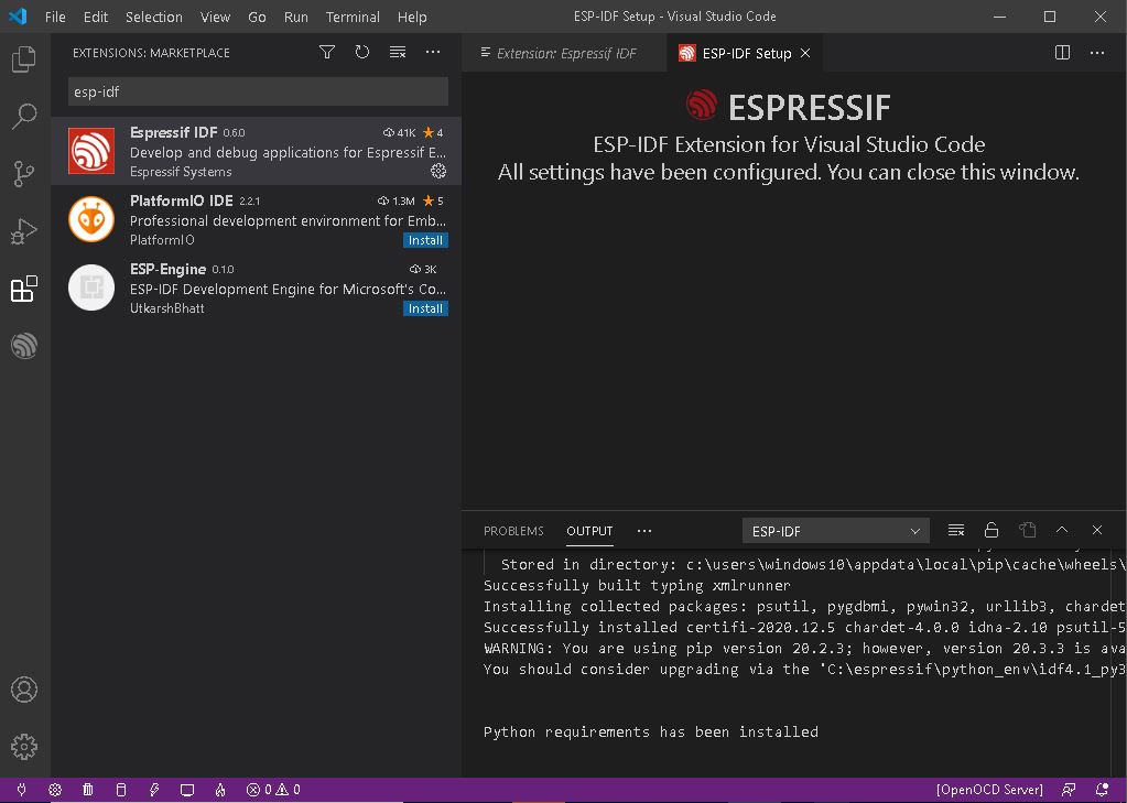 ㅁ esp-idf extentions 설치