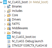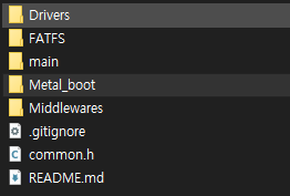 Metal_boot는 부트로더 프로젝트 폴더이며 이 곳에서 Drivers, FATFS, Middlewares를 옮겨 왔습니다.